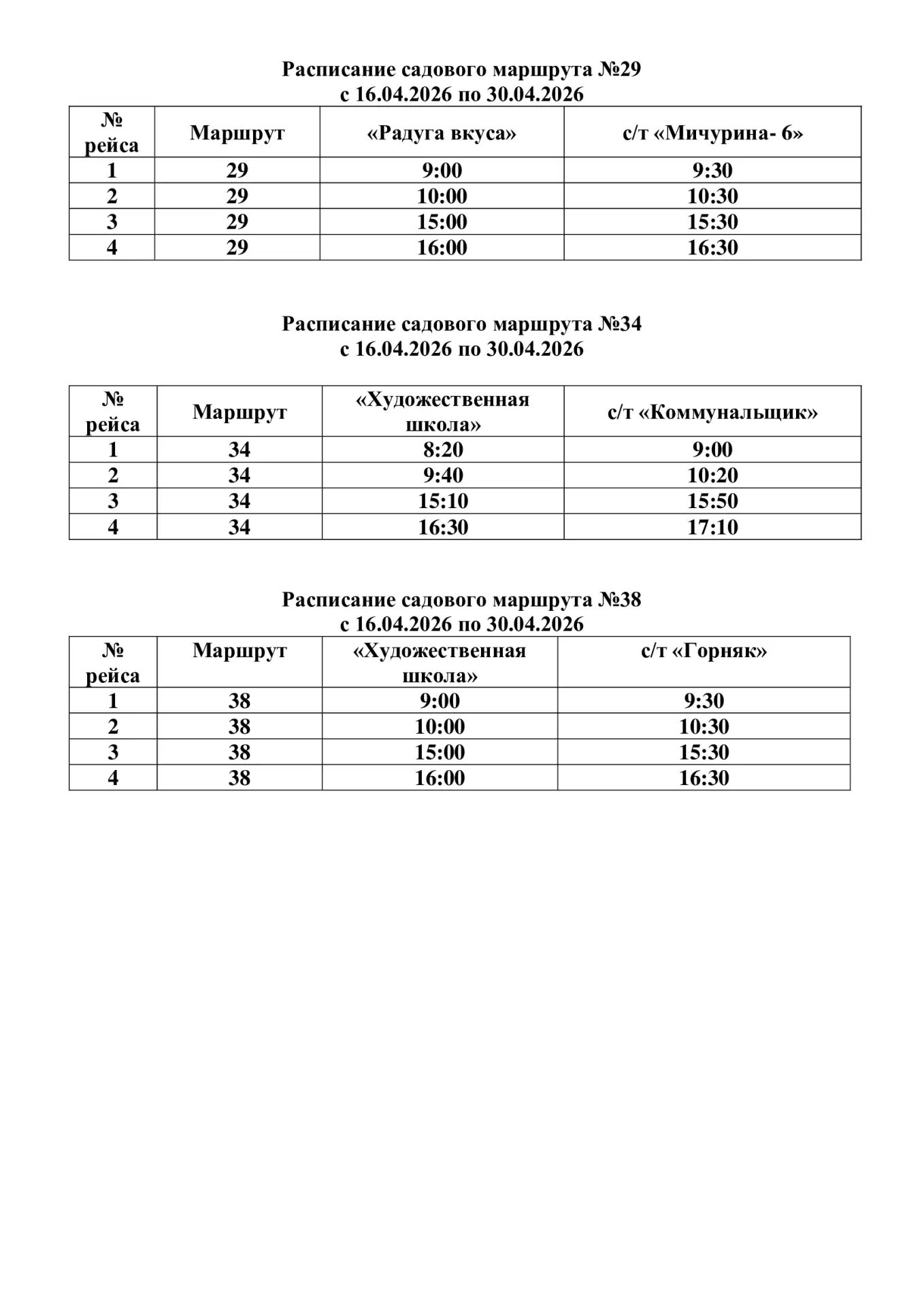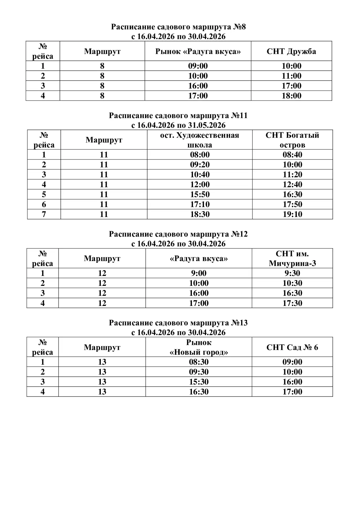 Расписание садовых автобусов уже опубликовано на сайте администрации. Оно будет меняться в мае, июне и сентябре.
