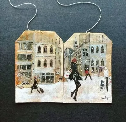 Художница Руби Сильвиус представила уникальный проект под названием «363 Days of Tea», в рамках которого она преобразует старые чайные пакетики в миниатюрные полотна. Каждый день она создает небольшие шедевры, используя различные техники: рисование, коллажи и акварель. Этот художественный эксперимент показывает, как простые предметы могут оживать под кистью мастера.