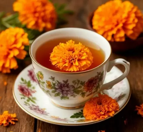 Бархатцы – это не просто яркие цветы, обрамляющие цветники. На протяжении веков они использовались в народной медицине как натуральный напиток. Чай из бархатцев готовят из сушёных листьев цветков, которые заливают горячей водой, чтобы получить насыщенный эликсир с лёгкой горчинкой и цитрусовыми нотами.