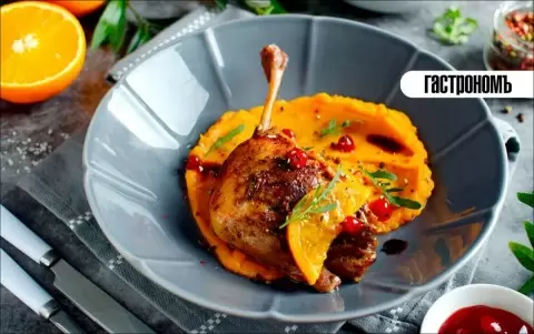 - Утиные ножки конфи с яблочным пюре: Утка и яблочное пюре составляют гармоничное сочетание. Блюдо получается невероятно ароматным и нежным. Для его приготовления понадобятся утиные ножки, яблоки, апельсин, чеснок, тимьян и дижонская горчица.