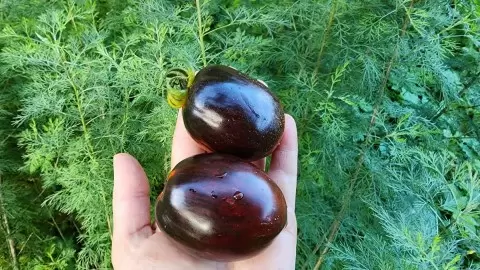 Внешность плода: Созревая, томат становится настоящим произведением искусства: черно-фиолетовый у плодоножки и ярко-оранжевый сверху.