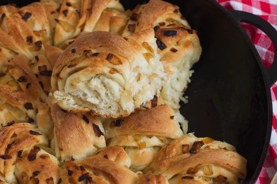 Луковый пирог получается не только ароматным, но и очень удобным: его не обязательно резать перед подачей — каждый сможет оторвать кусочек по своему желанию!